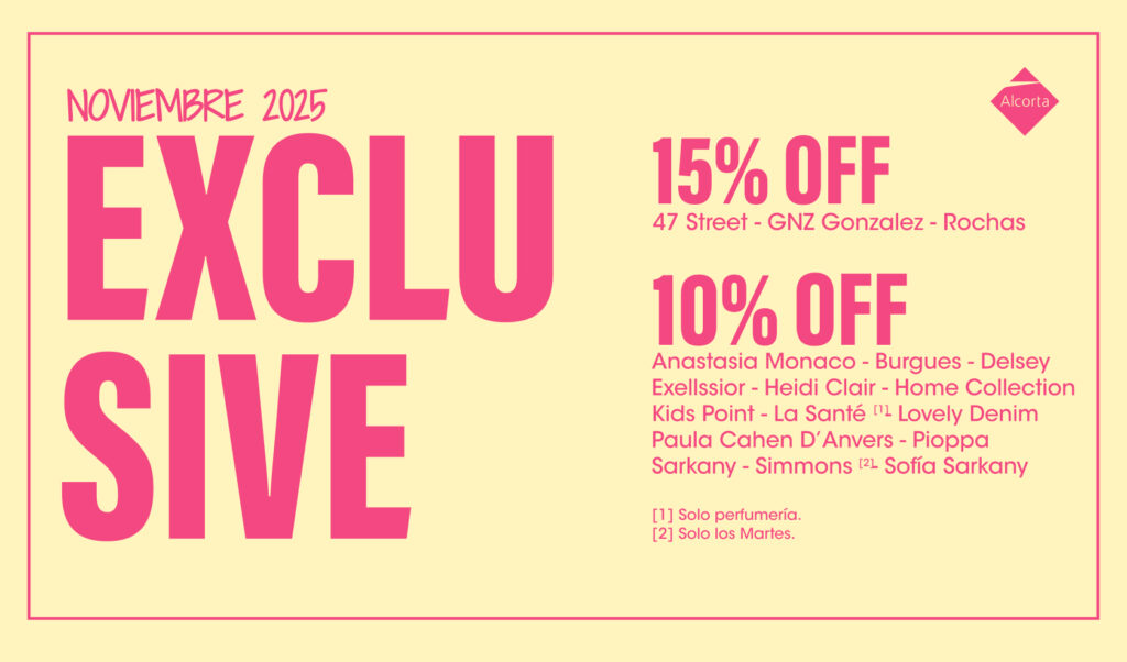 Shopping: https://www.alcortashopping.com.ar/exclusive/. El Organizador se reserva el